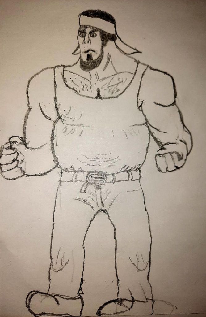 I also drew a random Spider and took some time drawing the Quarry Gang Boss, one of the first real bosses of the main game. I always wanted him to be a big and tough character, kind of like Tohru from Jackie Chan Adventures or an old-timey wrestler. This was the result.