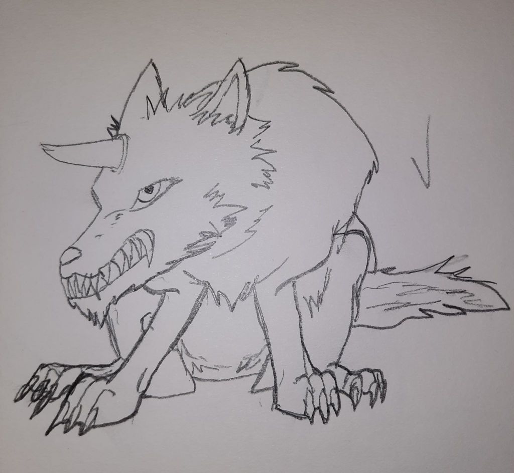 The Dire Wolf is also meant for a side quest in Section Two or Three. This is actually my second attempt at drawing this guy. My first draft looked okay, but was kind of janky compared to some of my other drawings. This one has the same tough feel as the previous attempt, but is more streamlined and gets the look across better.