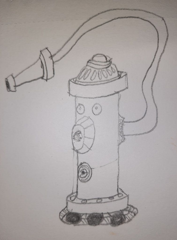 Finally, lets talk about the fire hydrant. The Fire Robo was a request from my wife after she saw the drawing of the Helper Robo. She wanted me to draw a fire hydrant like that. That request ended up turning into a bit of a reference to an old cartoon from the late 1960s called Here Comes The Grump. Think he’ll be a joke enemy in the Helper Robo’s lair.