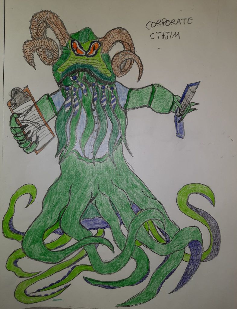 Corporate Cthjim is a random character drawing out of more random discussions at work, but it fits in really well with one of the sidequests later on, so welcome to the team Cthjim!