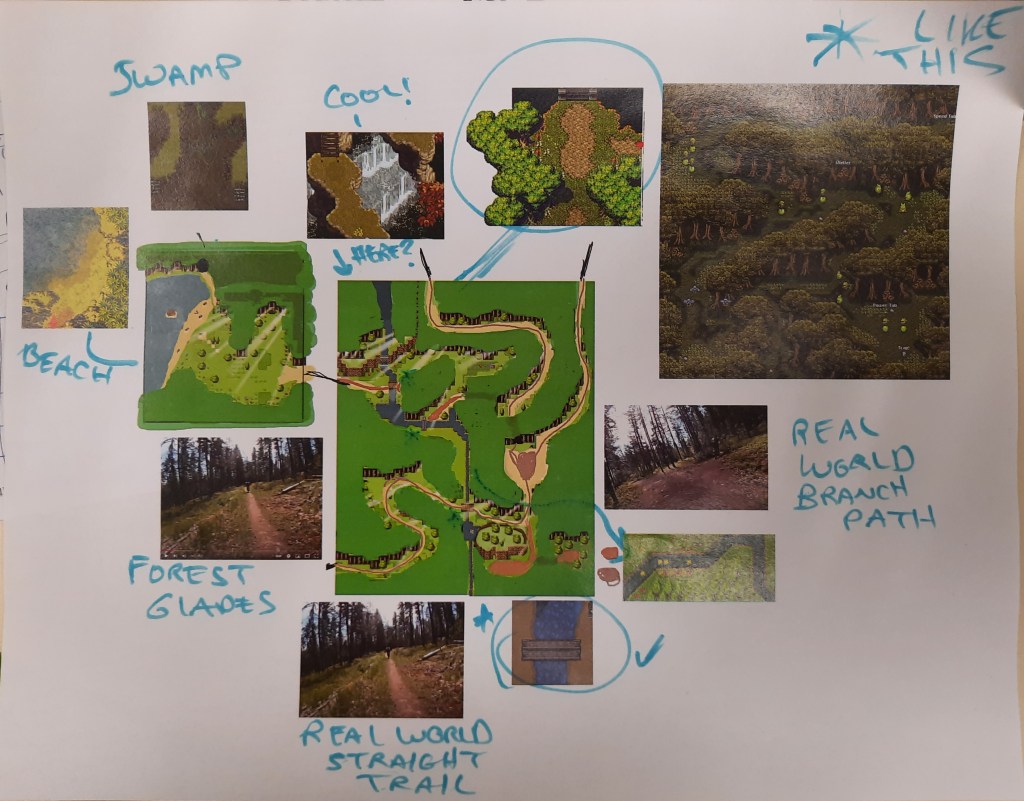 Finally, I looked at real-life forest trails to get an idea on how a trail like this would ACTUALLY look and be kind of realistic for my RPG about monsters in modern day times.